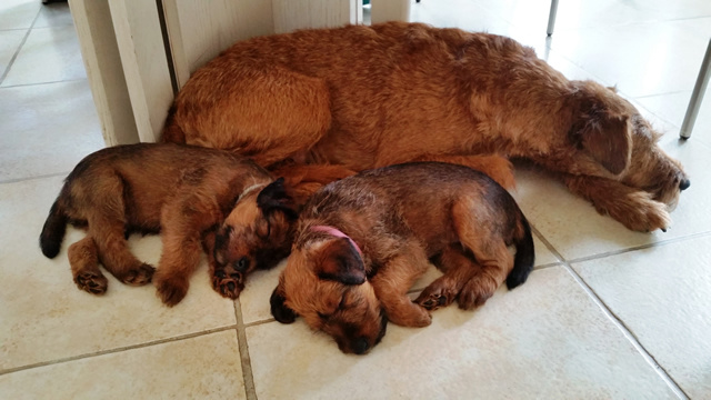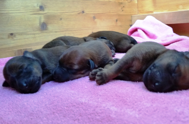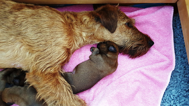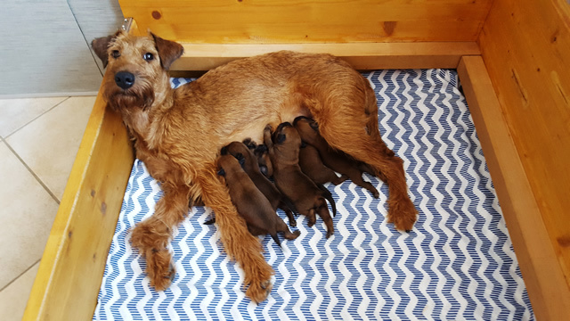 Unsere Eline Irish vom Ellbach und Shane McGowan von der Emsmühle sind am 04.04.2016 zum ersten Mal stolze Eltern von 6 süßen Welpen geworden. Auch Shane McGowan von der Emsmühle hat sehr viele nationale und internationale Titel gewonnen und ist ein sehr freundlicher, kinderlieber und ausgeglichener Rüde.