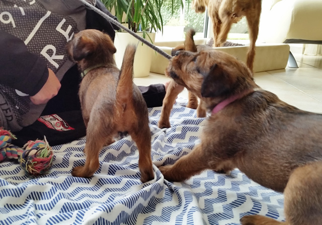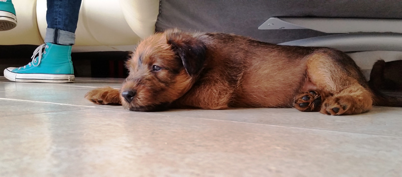 Aus diesem Wurf haben wir die kleine Gilli (Gillian Irish vom Ellbach) behalten und sie bereichert unsere Familie und das Hunderudel. Gilli ist ein sehr ausgeglichenes und sanftes Mädchen und bringt viel Freude in die Familie.