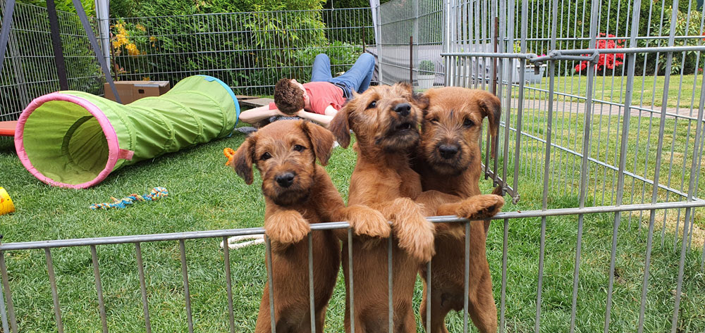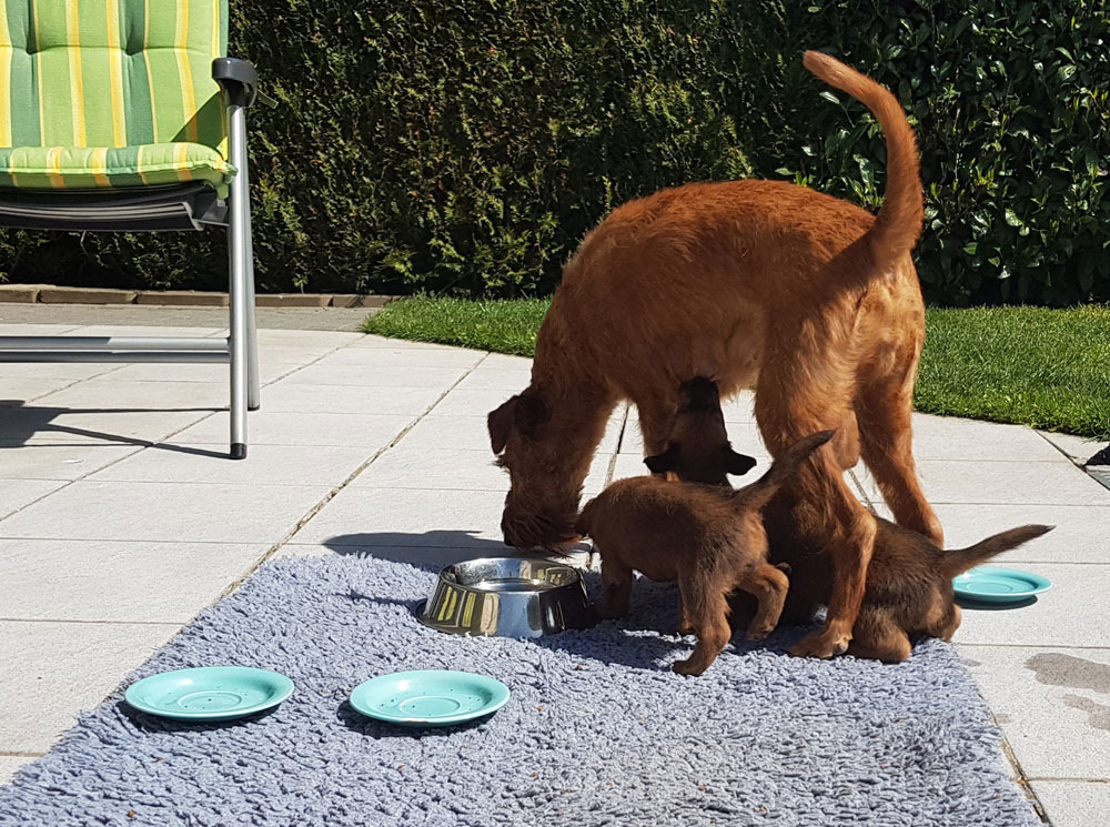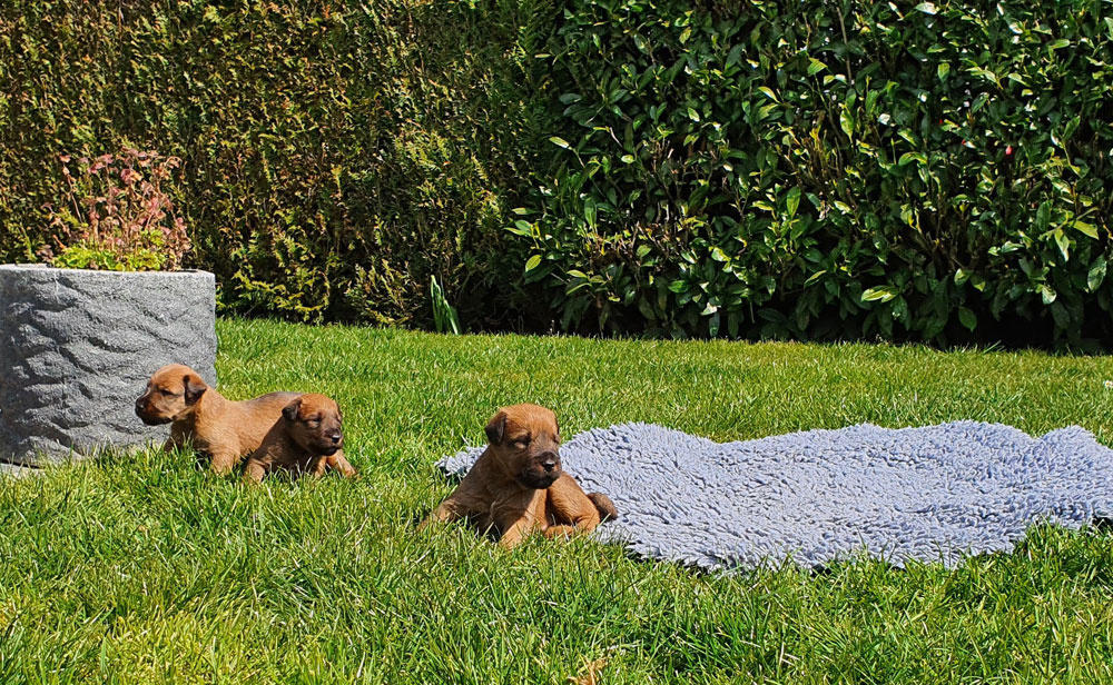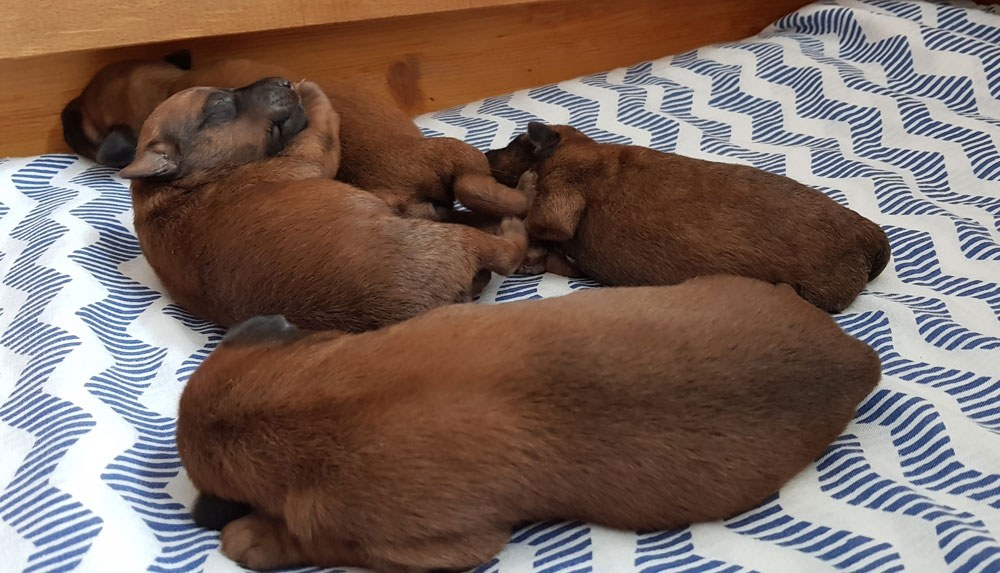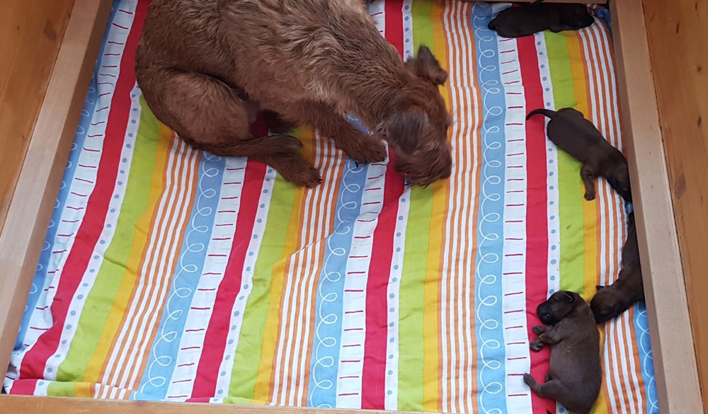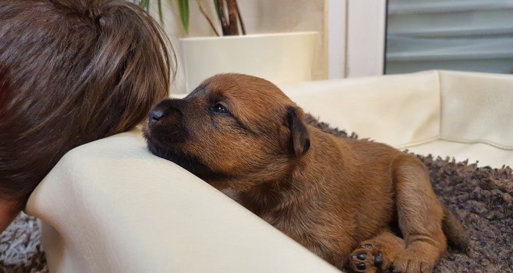 Am 16.03.2020 wurde unser I-Wurf geboren. Vater des Wurfs ist wieder unser „Deckblitz“ Niall vom Hürtgenwald. Die Geburt des Rüden und den 3 Hündinnen ließ diesmal etwas länger auf sich warten, war jedoch wieder sehr unkompliziert. Leider hat eine kleine Hündin nach 4 Tagen aufgehört zu atmen – dies hat uns sehr berührt. Manchmal liegen leider Freud und Leid sehr eng beieinander.