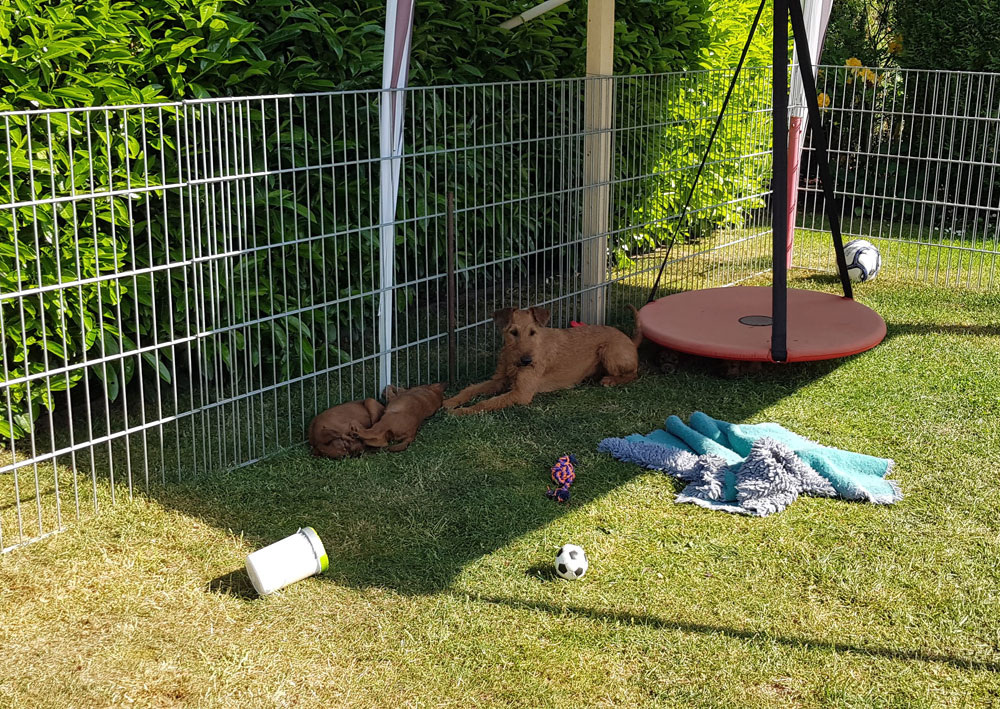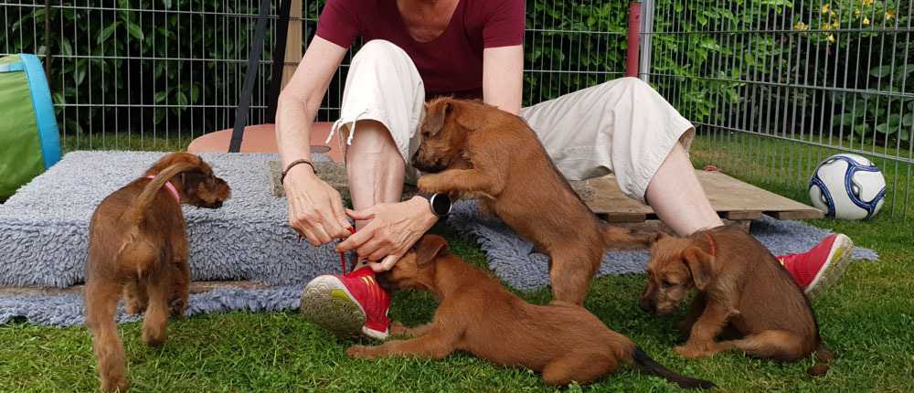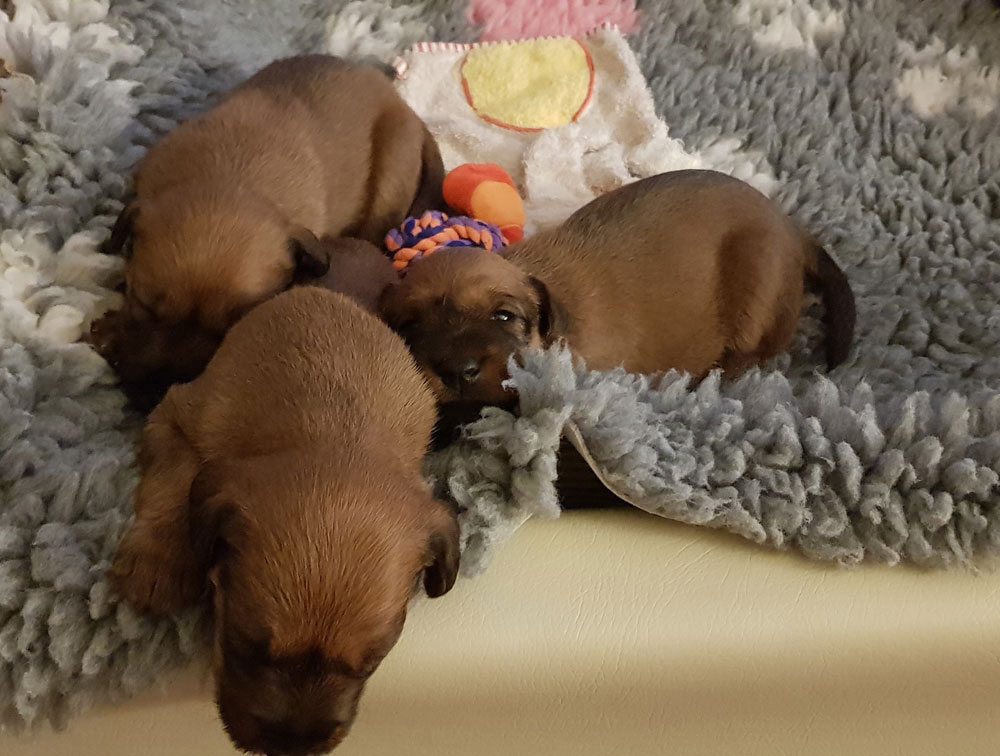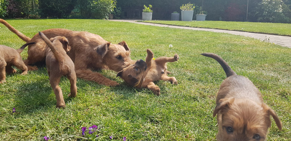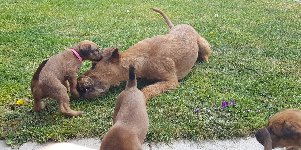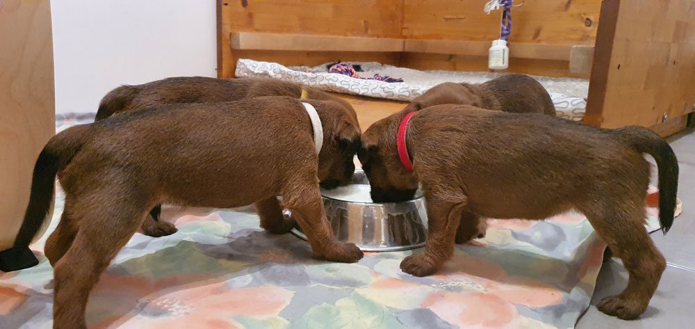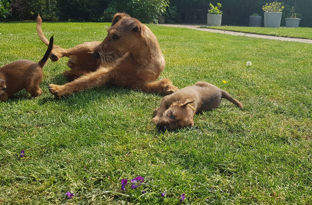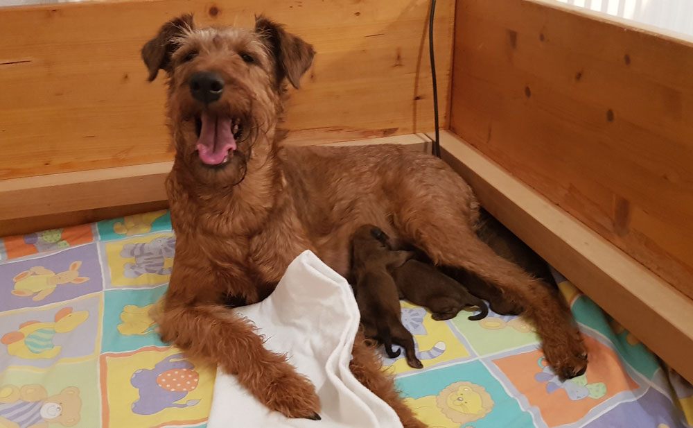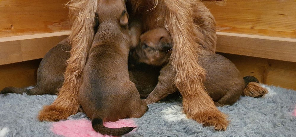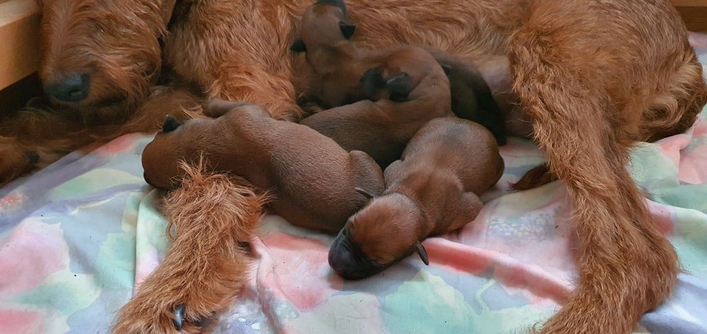 Anfang des Jahres wurde unsere Gilli (Gillian Irish vom Ellbach) von Sean (Sailor s Sean) gedeckt und am 30.03.2022 haben 4 kleine Welpen das Licht der Welt erblickt. Es sind 2 Rüden und 2 Hündinnen. Die Welpen entwickeln sich prächtig und Gilli versorgt sie wieder sehr instinktsicher. Wir haben die Aufzuchtzeit sehr genossen und die Welpen haben wieder tolle Familien gefunden. Eine kleine Hündin geht in eine liebe Familie, die bereits einen Welpen aus unserem B-Wurf hatte.