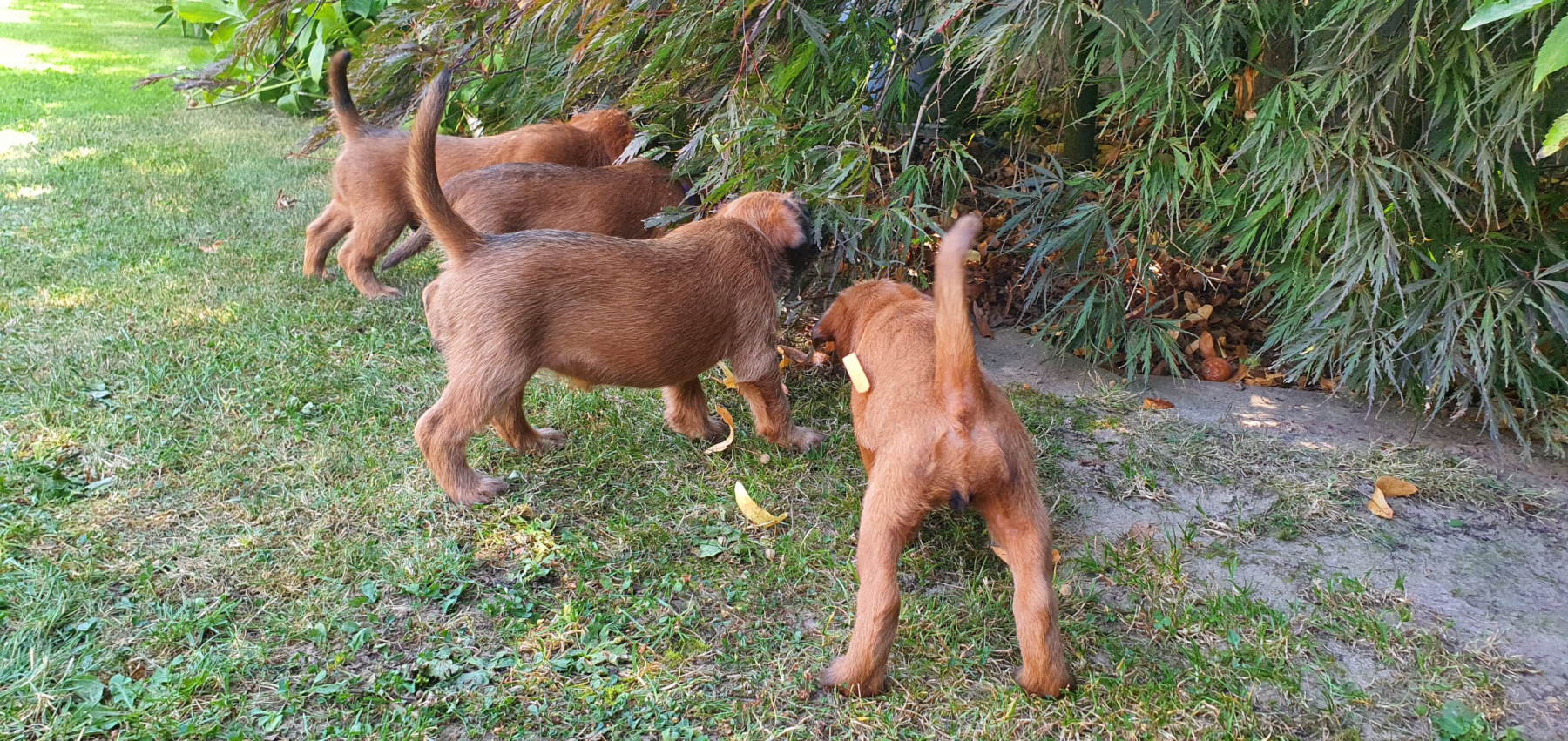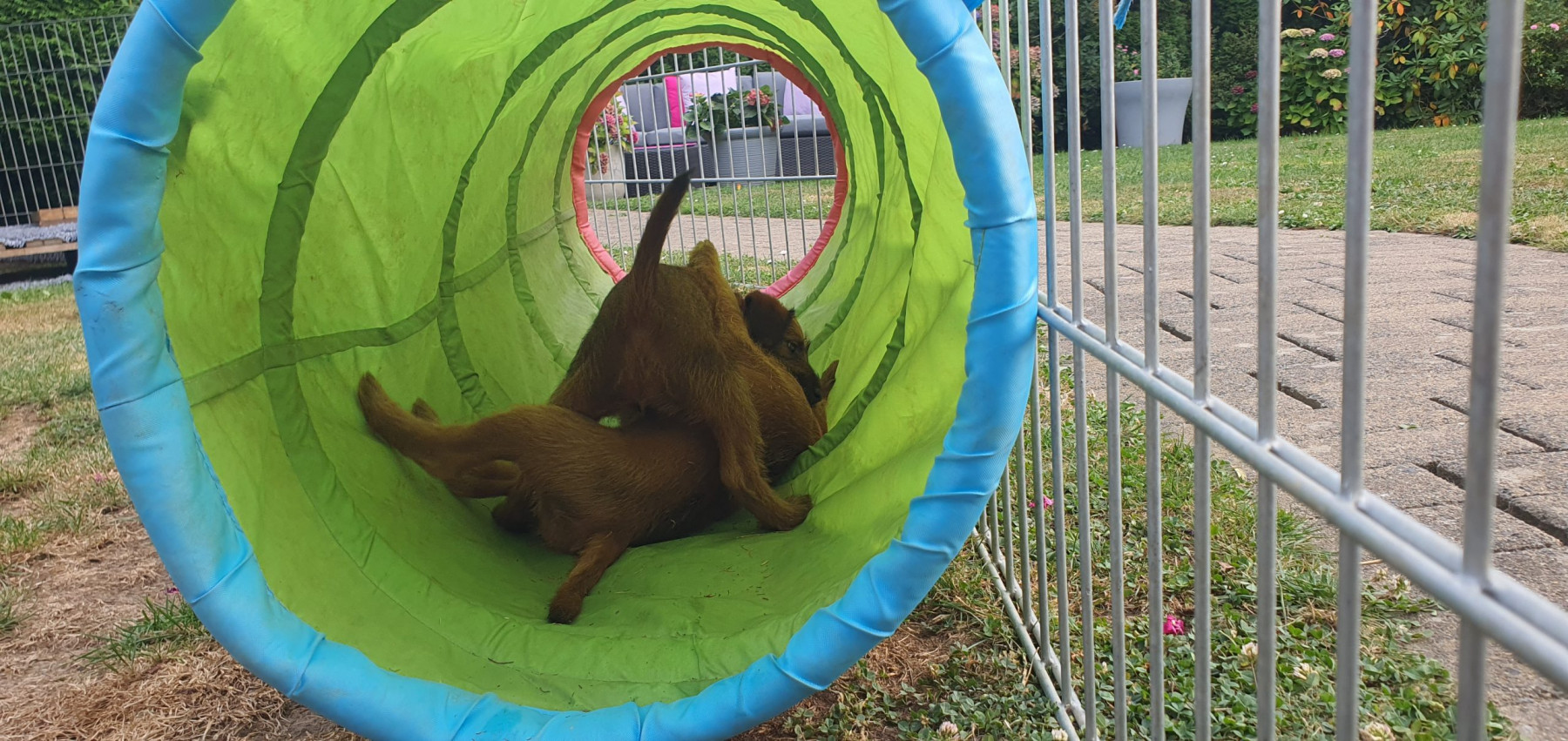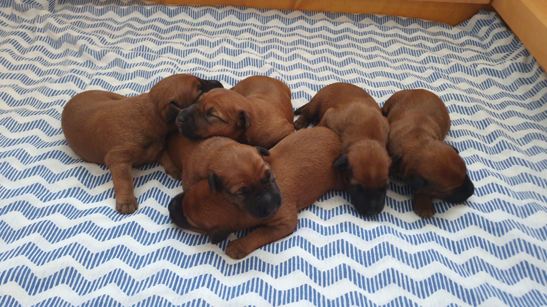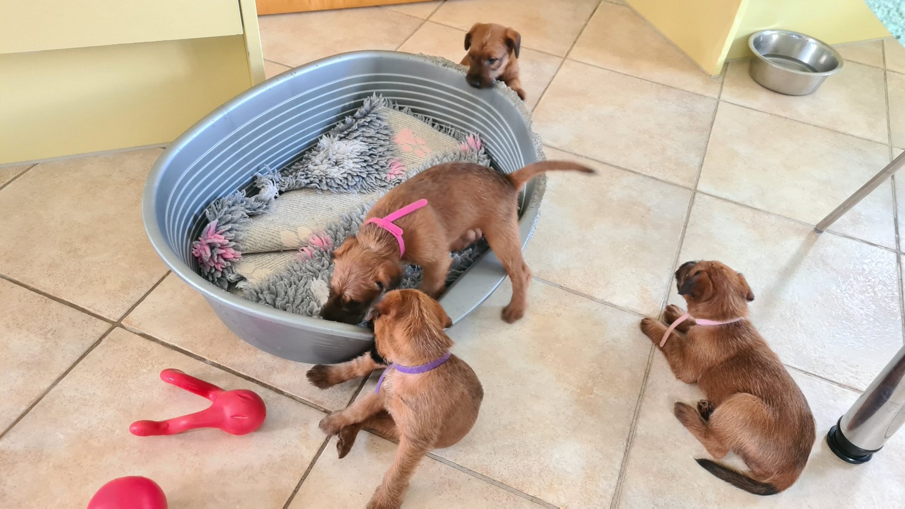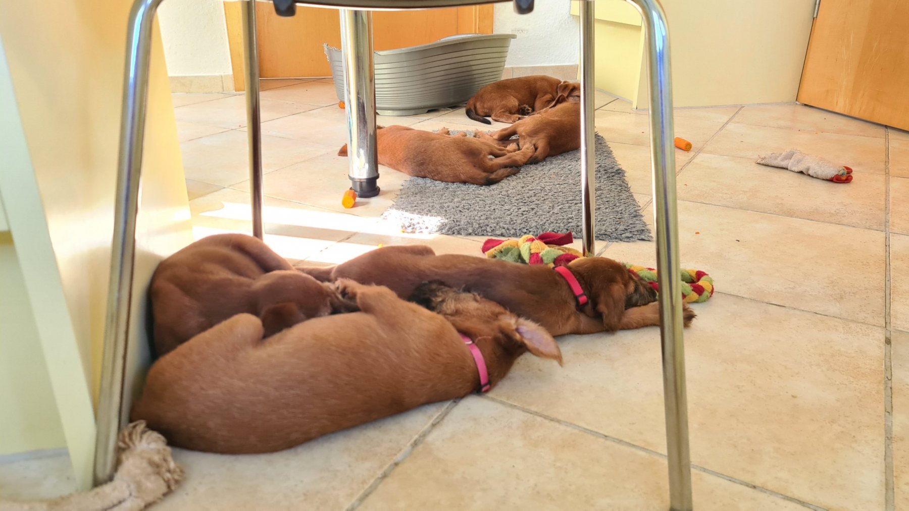 Mitte Mai wurde unsere Juna (Fireflash Juna Ellbroock) wieder von Noah (Hannes Irish vom Ellbach) gedeckt. Wir haben eine Wurfwiederholung vom N-Wurf gemacht, da die Welpen besonders gut gelungen sind. Am 19.07.2025 sind dann 6 kleine Welpen geboren. Es sind 1 Rüde und 5 Hündinnen. Die Welpen entwickeln sich prächtig und Juna versorgt sie sehr gut. Wir sind wieder sehr froh und dankbar.