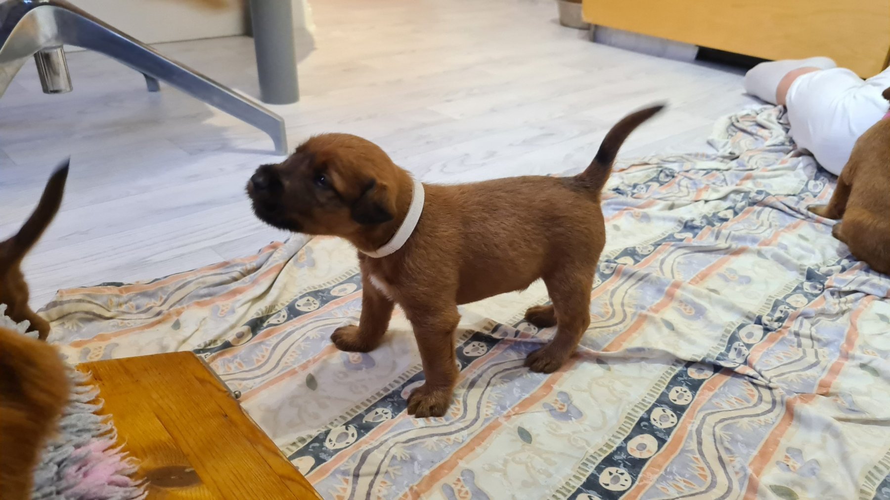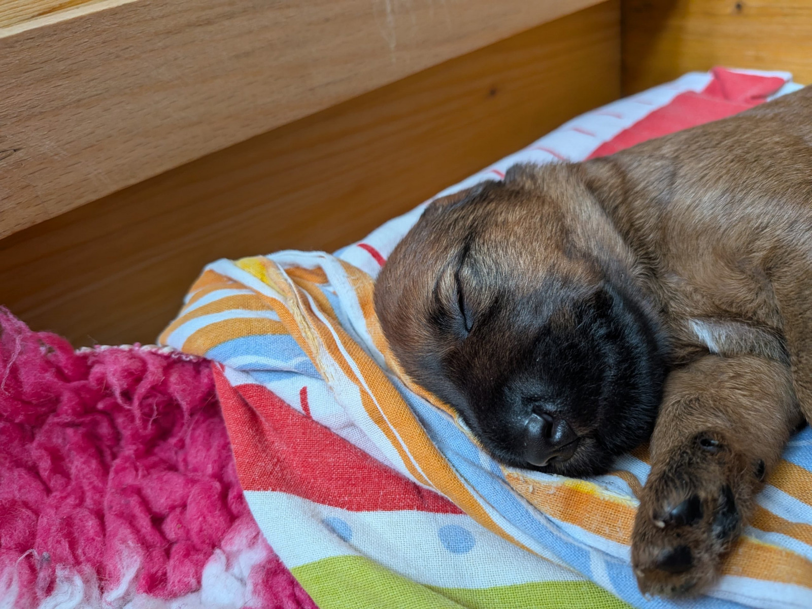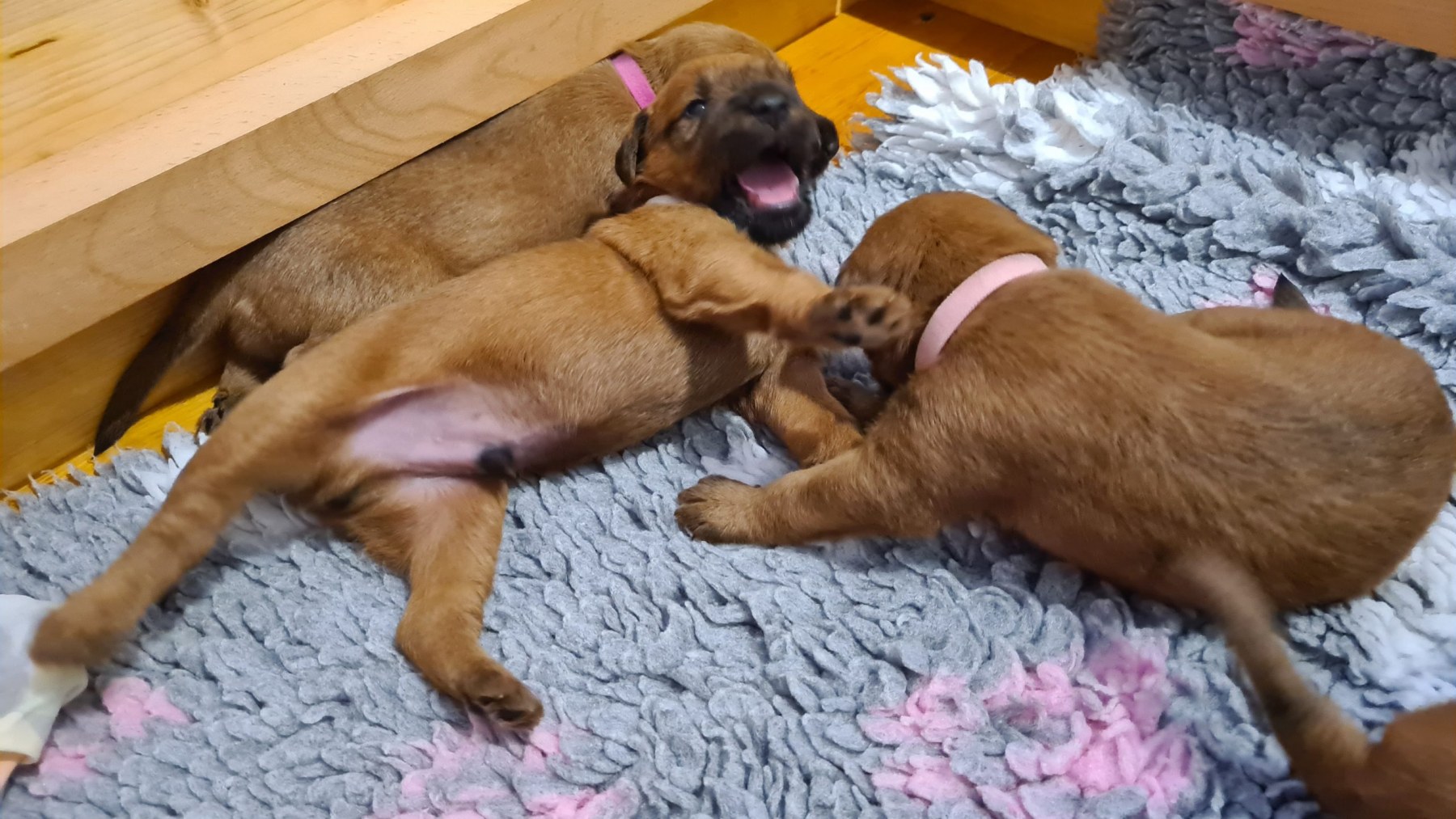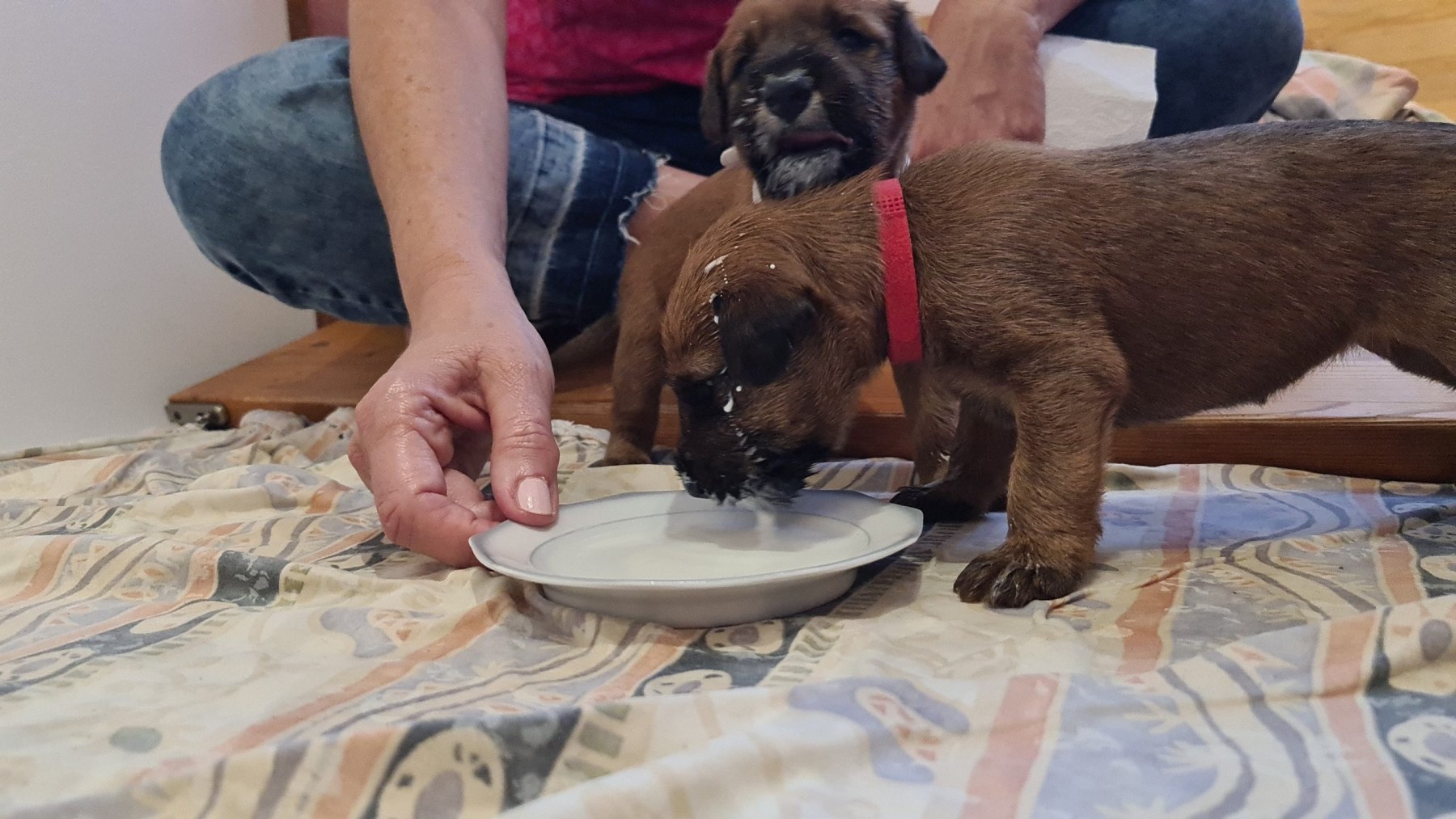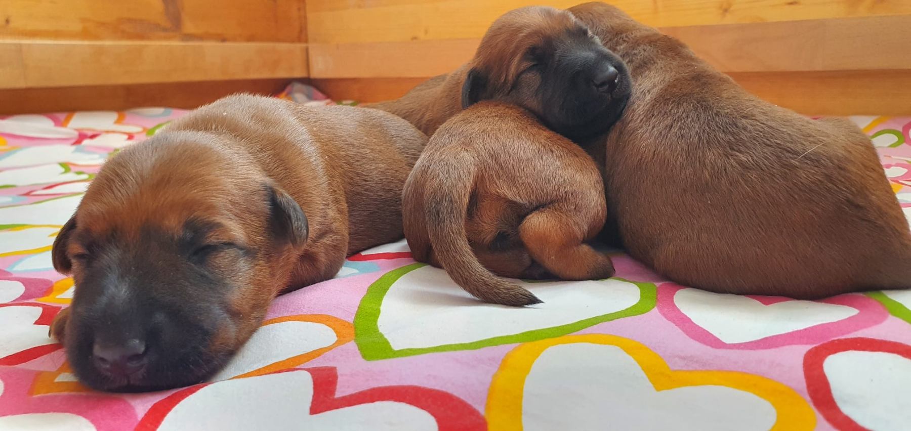 Mitte Mai wurde unsere Juna (Fireflash Juna Ellbroock) wieder von Noah (Hannes Irish vom Ellbach) gedeckt. Wir haben eine Wurfwiederholung vom N-Wurf gemacht, da die Welpen besonders gut gelungen sind. Am 19.07.2025 sind dann 6 kleine Welpen geboren. Es sind 1 Rüde und 5 Hündinnen. Die Welpen entwickeln sich prächtig und Juna versorgt sie sehr gut. Wir sind wieder sehr froh und dankbar.